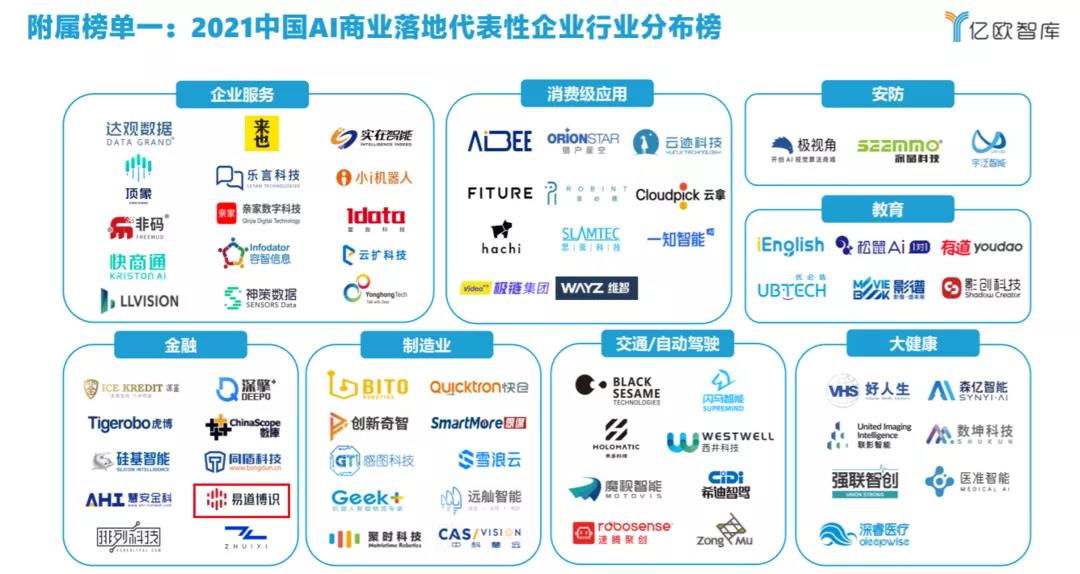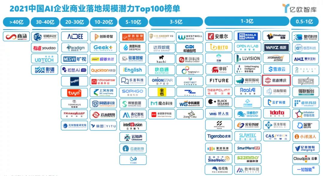 7月9日,2021中國AI企業商業落地規模潛力TOP100榜單在WAIC世界人工智能大會上正式發布,易道博識憑借在銀行、證券等領域的成功商業落地實踐順利入榜,并且智能結構化平臺作為優質行業應用案例,被2021年中國人工智能商業落地研究報告收錄。