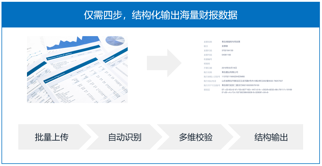這一切,離不開易道博識在人工智能領域的深厚積淀,以智能財報錄入系統為代表的易道博識系列產品,已服務于中國農業發展銀行、華夏銀行等金融機構。