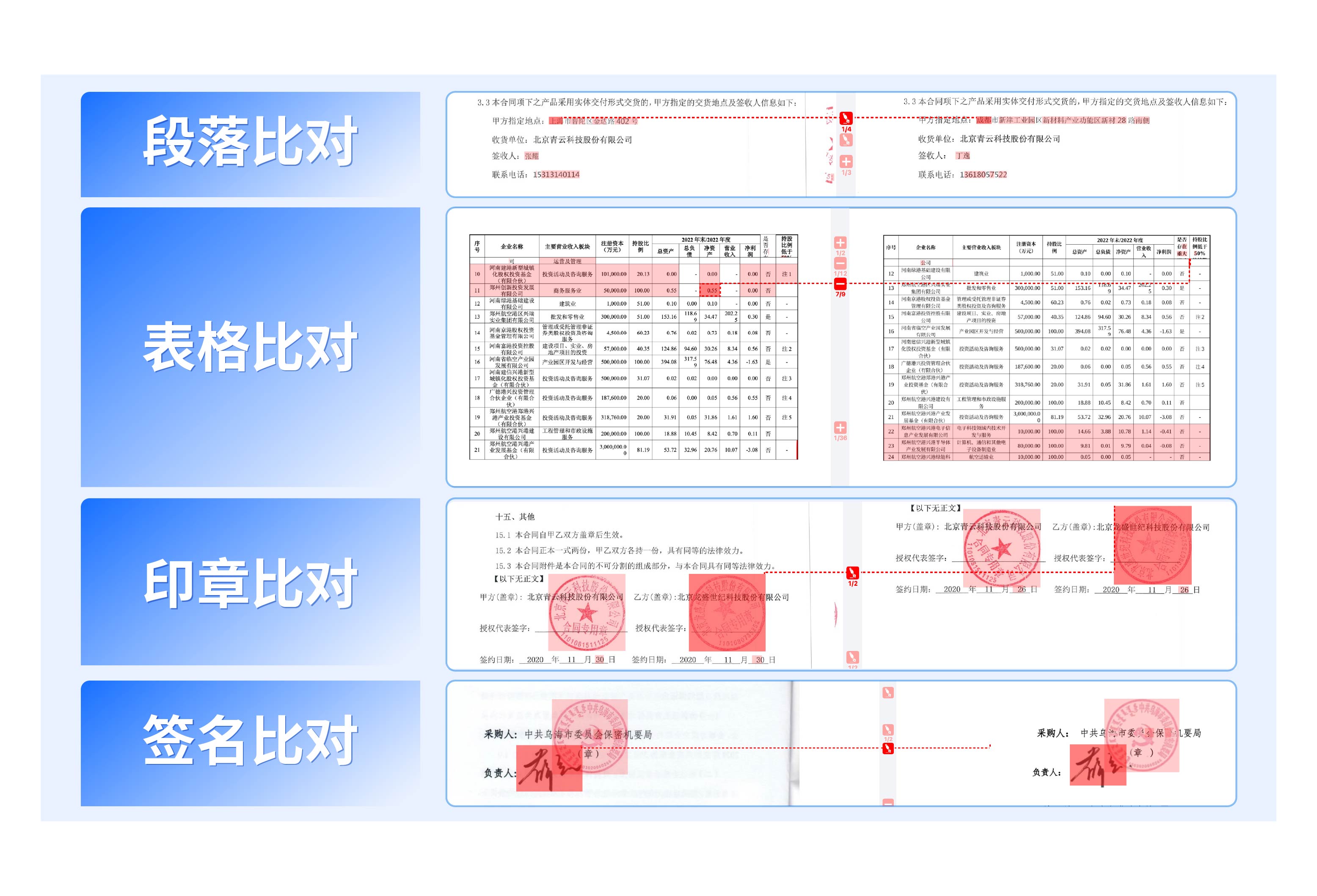 簽名比對:對比分析文檔中的簽名文件差異。