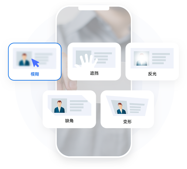 自動檢查卡證圖像質量,對模糊、缺角、遮擋、變形、反光等情況并進行反饋。