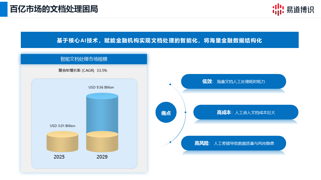 金融行業是數據密集型行業,每日需處理海量的紙質和電子文檔,如卡證、票據、財報、銀行流水、信貸合同等。然而,傳統的文檔處理方式長期面臨諸多痛點。