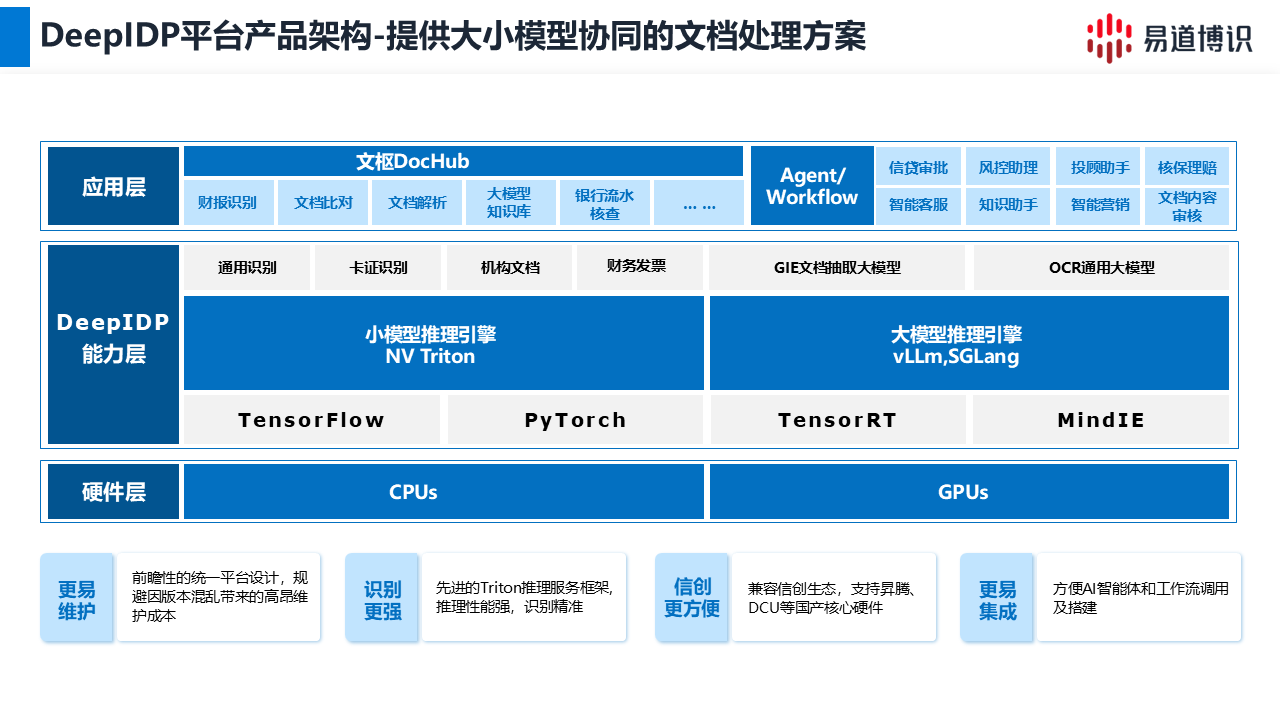 易道博識DeepIDP平臺,采用大小模型協同架構,為企業提供兼具成本效益與高精度的解決方案。