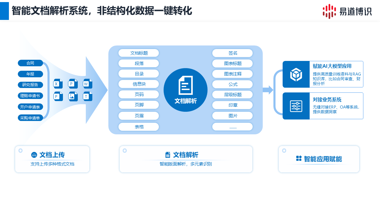 回答:系統支持PDF、JPG、PNG、Word、Excel、PPT等多種主流格式的批量解析,具備卓越的格式兼容性。