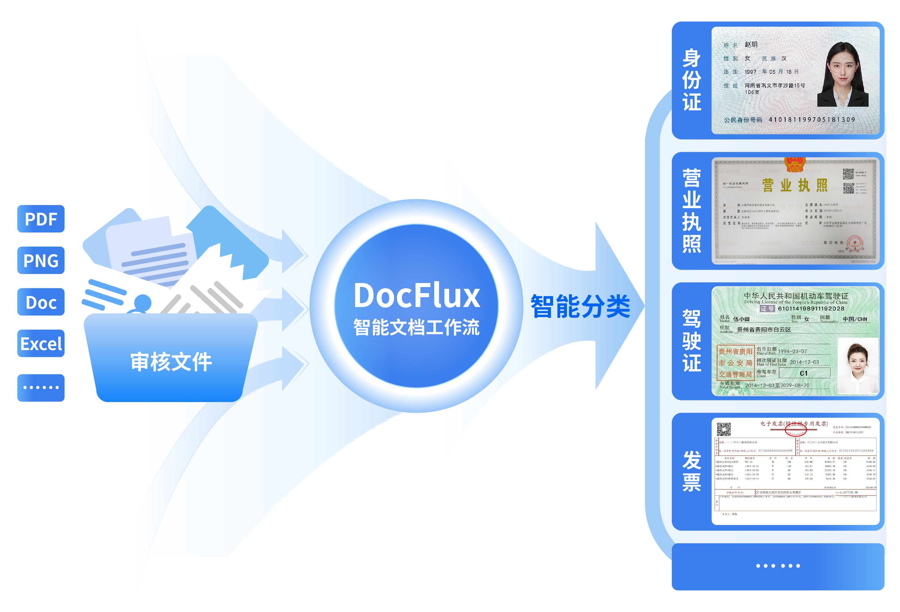 智能分類分揀: 自動拆分混貼、混掃文件,各類單據精準歸類。無需人工分類。