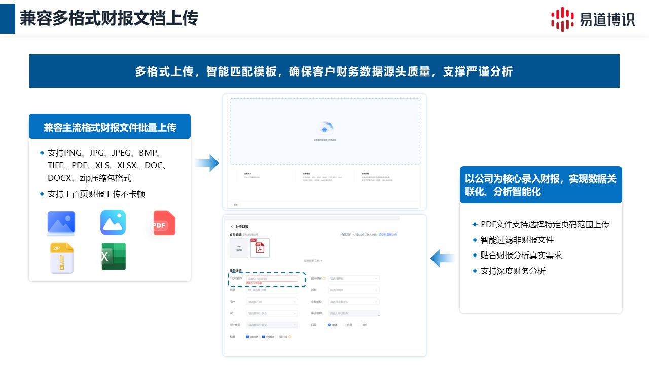 智能財(cái)報(bào)錄入系統(tǒng)支持PNG、JPG等常見(jiàn)圖像格式,兼容PDF、Excel、Word及ZIP壓縮包等多種文件類型,能夠適配不同來(lái)源的財(cái)報(bào)資料。針對(duì)實(shí)際業(yè)務(wù)中資料類型繁雜、夾雜非財(cái)報(bào)文件的情況,系統(tǒng)可自動(dòng)識(shí)別并過(guò)濾無(wú)關(guān)文件。